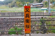 大坂夏の陣で活躍した戦国武将 後藤又兵衛が、この地へ落ちのび僧侶となり、一生を終えたと言う伝説が残っており、この枝垂れ桜が残る地も、後藤家の屋敷跡であることから地元では、「又兵衛桜」と呼ばれ親しまれています。一説には樹齢300年とも言われ、幹周約3m、高さ約13mの見事な枝垂れ桜です。