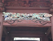 鎌倉では珍しい翼のある龍が、荒波を乗越えているモチ-フで彫られています。2010年9月~2011年9月の保存修理により、龍の彫刻も極彩色が甦りました。龍の前で手を拍つと鳴声をあげるという「鳴龍」伝説も残されています。 |