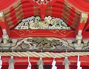 下側の彫刻は、「雲、松、2匹の亀」です。社殿は、1996年の改修により、1689年の徳川綱吉による再建当時の朱色が鮮明に再現されています。 |
