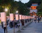 境内には、鎌倉ゆかりの著名人が、揮毫した書画400点がぼんぼり(雪洞)に仕立てられ、日没とともに明かりが点灯され幻想的な光景が醸し出されます。