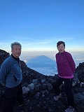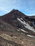 7/20(土) 6合目宝永山荘に到着。宝永山の火口を見学後宿泊し、高度順応をしました。翌日、4時起床、身支度を整え、朝食後5時半出発。6合目からは1mを超える樹木はなく、一気に視界が開け、目に付くのはいじけたイタドリ とアザミのみとなる。砂礫岩場を歩き、11時半9合目で昼食。つづら折りの狭い道を登り、13時半頂上に到着。まず郵便局で登山証明書を購入する。浅間(せんけん)神社奥宮へお参り。山頂は大勢の人でごった返していました。次は最高峰の剣ヶ峰(富士山気象観測所)を目指して、馬の背に登りぐるっとお鉢巡りを2時間。大沢崩れ、残雪でできる金明水、銀明水を見学。この日は、頂上の富士館に宿泊、夕日に照らされた影富士は不思議な感覚でした。