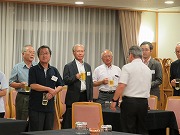 夕方からは六ケ所村の宴会場にて親睦会を開催し、MOOS社長と社員15名、OB会員43名の合わせて59名が参加し大盛会となりました。 参加者は久々の再会に青森での思い出・苦労話や、各人の近況報告などで大いに盛り上がり、2時間半の会は瞬く間に過ぎてしまい、又の再会を約束し散会となりました。