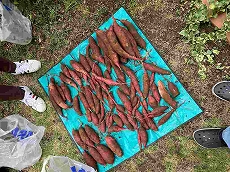 10月26日(土)に孫たちとさつまいもの産地川越市でいも掘りをしてきました。 某自動車販売会社のお客様交流イベントで、昨年は抽選に外れましたが今年は当選しました。 1家族16株の割り当てで、土が乾いており泥んこに汚れることもなく30分ほどでビニール袋3袋の収穫がありました。 「べにはるか」という品種で、2~4週間程度置いたほうが甘みが出て食べごろとのことですので、 焼いもにして食べるのはもうちょっと先になりそうです。