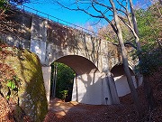 山の中に不思議な構造物は山中湖からの水路橋です。発電用に大正9年建設。