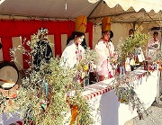 (授与所の商売繁盛の福笹と福娘、福娘の明るい笑顔と掛声に癒されました |