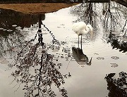 スイレン池の水面に映った逆さ玉縄桜 |