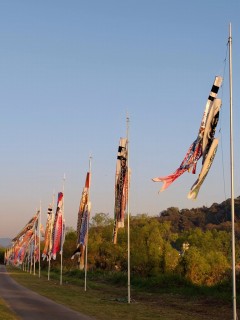 こどもたちの健やかな成長を願い、ふるさとの川総合公園に鯉のぼり約150匹が泳いでいます。今年で27回目、季節の風物詩となっています。 以上
