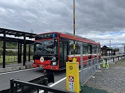 柳津駅始発のJR気仙沼線BRT(大震災後、被災した線路を専用道路にしたバス高速輸送システム) |