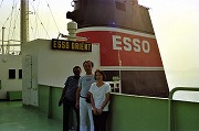 タンカートレーニングでエッソ オリエント号のブリッジにて。中央が本人。 |