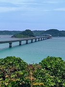 三か所目は、下関市にある角島(つのしま)です。面積は約4㎢、人口約700人の小さな島と本州との間に全長1780mの「角島大橋」が架けられ、車で走れば両サイドにコバルトブルーの海が広がります。