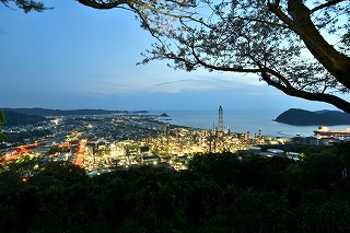 原油船が入港した夕暮れ(2023年4月4日)、御殿山から製油所周辺を撮影しました。 この年の10月16日石油精製機能停止により、最後の山桜と原油船とのコラボ写真となりました。 以上