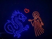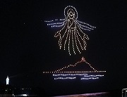 ドローンによる「天女と龍神」の描写。江の島伝説ショ―の開始 |