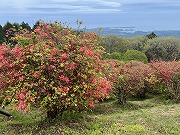 山ツツジは二分咲きくらい(遠くにリアス海岸) |