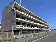 気仙沼震災遺構の旧向洋高校、3階までの窓枠は無くなり4階の外壁は流れてきた船が当たったのか捲れていた |