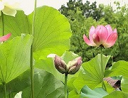 大船フラワ-センタ-には、約260品種、300鉢の蓮が栽培されています。 6月下旬から7月中旬の開花の時期には、1日に約150本の花が咲き見頃の期間は早朝開園されていました。