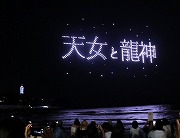 ドローンによる「天女と龍神」の描写。江の島伝説ショ―の開始 |