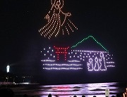 500機のドロ-ンが、江の島に語り継がれる「龍神と女神」の伝説(神話)をテ-マ にしたスト-リ-や、江の島に因んだ江の電や“えのすい”のくらげ等を、江の島の夜空に色鮮やかに写し出します。 ドロ-ンが描き出す音と光が一体となった幻想的な光景に、見学に訪れた多くの人達から歓声があがっていました。 ドロ-ンショ-終了後には、花火が打ち上げられ、一味違った夏の夜を楽しむ事が出来ました。