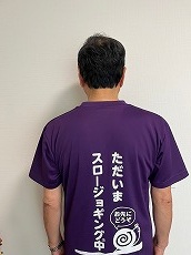 写真-1、2 :十数年続けているスロージョギングのユニホームを着て